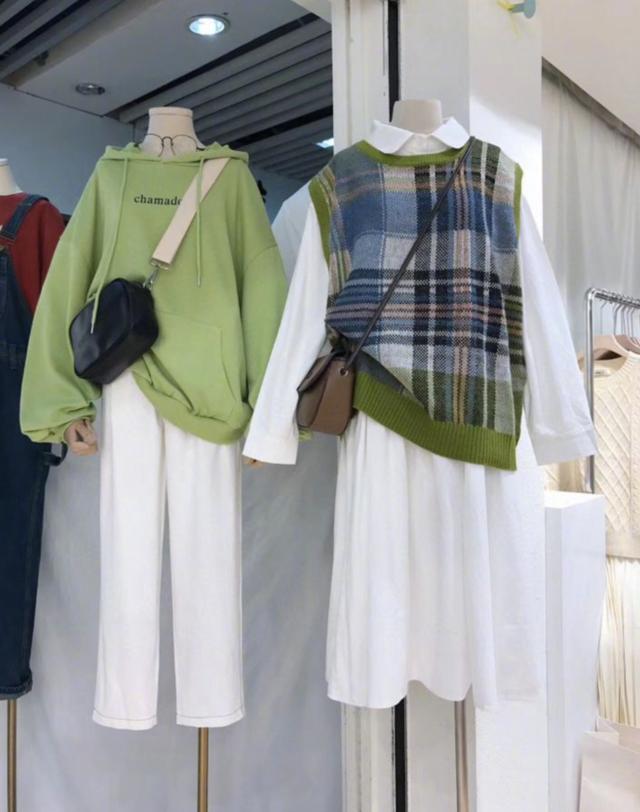 绿色是很多女孩子都特别喜欢的颜色,尤其是淡绿色,尤其是在春天,绿色看上去更加的具有生机,更让人喜欢。这是一个非常能打动人心的颜色,把绿色的连帽卫衣跟白色休闲阔腿裤搭配在一起,整体的效果特别好,能够让你看上去更青春,同时也可以把你最完美的身材展现出来。