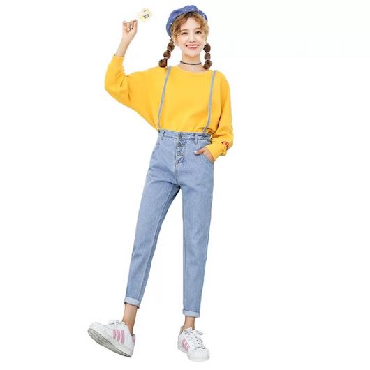 小编觉得,这样的单品真的是不计其数,但是在背带裤面前,显得一切都是浮云,小菜一碟不值一提呢;既可搭配T恤、衬衣、毛衣等等,呈现出清新文艺、时尚潮流、惬意休闲等各种风格;这么百变风格的它,你怎么可能会不喜欢呢?现在正值春暖乍冷的时节,减龄背带裤搭配,出街活力四射,若是再有一双舒适小白鞋的加入,青春又减龄,瞬间成为众人锁定的视线焦点。