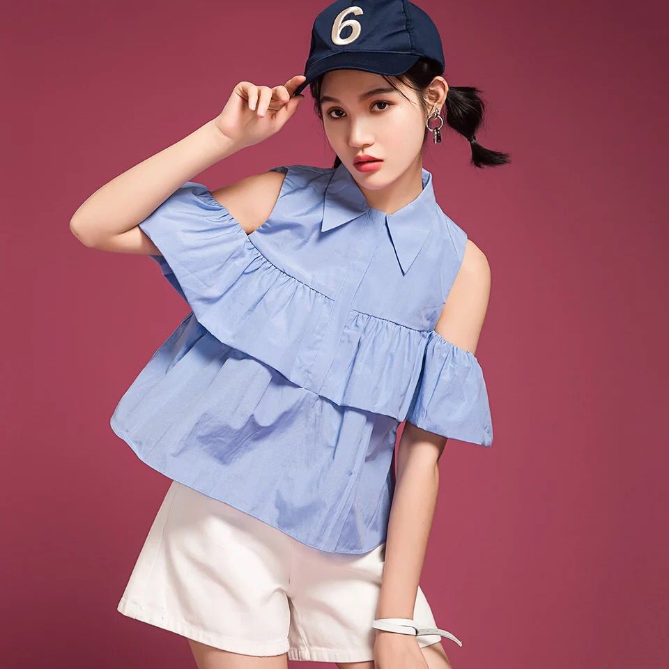 (七格格2017夏装新款短款纯色荷叶边无袖露肩翻领个性衬衫女X1216),快来和我一起瓜分红包】,复制这条信息¥szvr0X3g1sh¥后打开手机淘宝