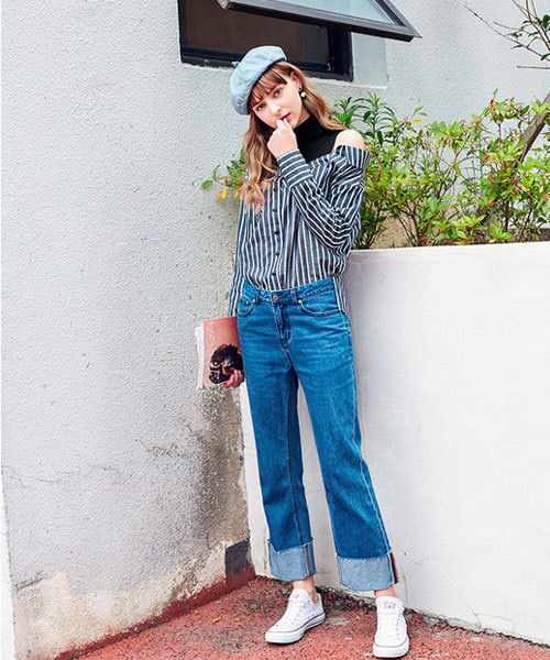 假两件衬衫悄悄的的来到了小仙女儿们的视野之中,小露性感的香肩,宽松的版型带着些许的小慵懒,拼接的设计层次感十足,配上一条牛仔裤更是活力满满。