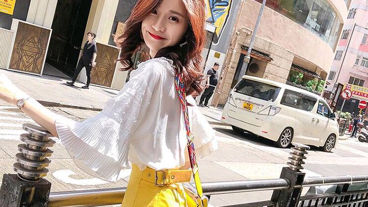 为什么红裙子穿上会变白,真相在这里梦幻甜美的雪纺衫,结合灵动的荷叶边与喇叭袖的设计,演绎出元气满满的仙女范。在仙女范雪纺衫可以撑起的天