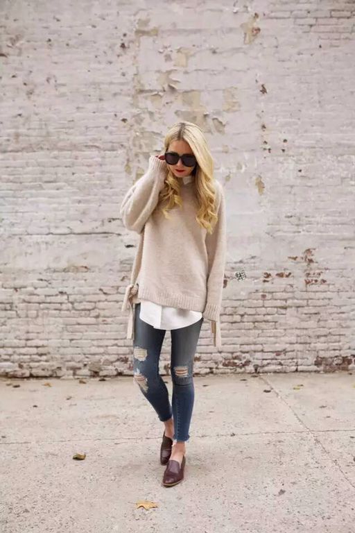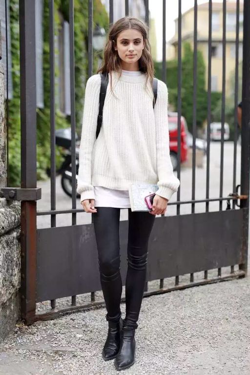 首先小编最推荐的是毛衣+黑色小脚裤的组合,显瘦保暖两不误。的确,厚实的毛衣相比春夏的衬衫T恤之类会相对容易显得比较臃肿,但有了修身款小脚裤的加持,根据“上松下紧”的黄金穿法法则,照样也可以显瘦无敌。