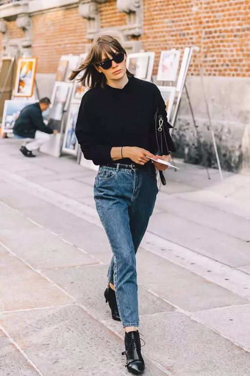 不难发现时髦精们的穿衣套路多是黑色小脚裤+黑色及踝短靴。鞋裤同色能够在视觉上很好地拉伸腿长,显高又显瘦,这个实用的心机穿搭技巧你可一定要get到。
