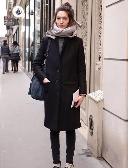 如果小仙女觉得全身黑色系,有时候会略显单调,那么围巾就能够很好的点缀整体的造型,还能够加分。
