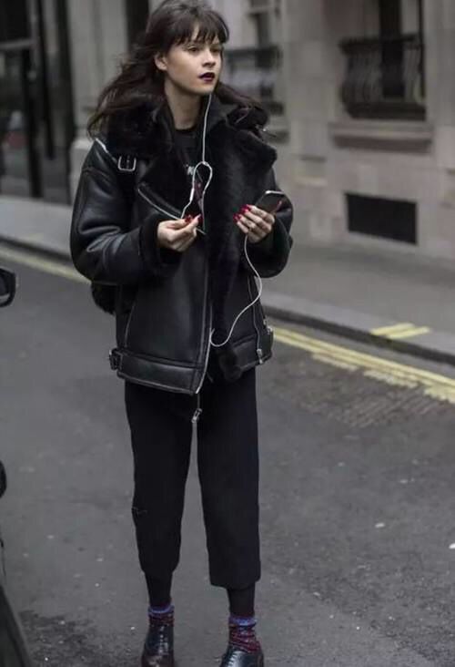 第一眼看到这身搭配,黑色破洞牛仔裤搭配黑色马丁靴,真的很有街头“不良少女”的时尚范,而黑色皮草的出现,却很好的减轻了这种感觉,瞬间增添了几分的优雅。