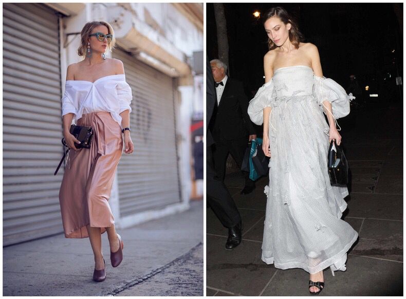 穿衬衫的小仙女更是可以解开几个衬衫扣子拉低至肩部形成一字肩,再配上一件金属光泽咖啡色半裙,女人味十足!燥热的夏天就是要露出迷人的小香肩,才不辜负这些好看的小裙子呀~