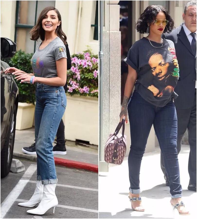 这里皮卡要着重讲一下粗臂MM必须避开的三种T恤:高袖口、泡泡袖荷叶边、超级oversize的T恤。第一种你们看图片自行体会吧,欧美小姐姐都驾驭不了;第二种比较适合小个子MM,粗臂的MM还是放弃吧;第三种最容易被误导,不是所有的oversize能遮肉显瘦,粗臂MM稍微一用力就显得虎背熊腰的。