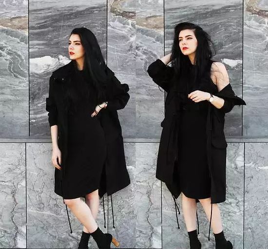 我们还可以选择黑色套装,不过要注意适当的露肤,这样才能避免大面积黑色带来的沉闷感,比如露出小截腿部肌肤。