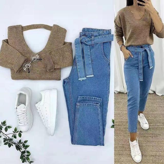 V领的设计能够更好地展现一个女人的颈部,颈部线条分明,打造一种显瘦的感觉。驼色是比较成熟、优雅的颜色,这样的一件毛衣会更好的把自身气质完美的表达出来。搭配一件高腰牛仔裤,美化腰部线条,从而使得身体看起来凹凸有致,比例分明,穿一双百搭的小白鞋,也进而起到了减龄的效果。