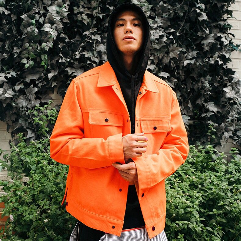 这个橘色相对来说就比较容易驾驭了吧,颜色靓丽大方,超吸引人的眼球,对于喜欢玩潮的男生来说上身超有范儿,这件外套的版型做工比较偏向工装风,率性大方,春季穿绝对会让人眼前一亮。