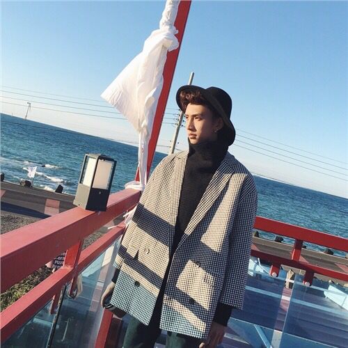 细格子给人的感觉更有文艺气息范儿,这件外套的版型还比较偏向oversize的款型,宽松大方,包容心很强,黑白格子也更经典,过臀的长度更适合身高比较高的男生,上身文艺范儿十足,衣服的面料也很不错,垂坠感很棒,十分帅气。