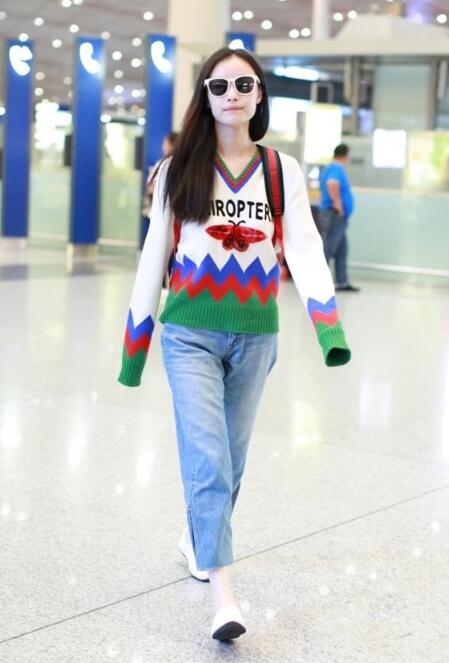 在毛衣中融入字母,图案元素,使这件毛衣更加彰显活泼感。花毛衣怎么搭?pick浅色牛仔裤,显得格外小清新。脚踩白色鞋子,减龄又舒适。get白色镜框的墨镜,增加了少女的活泼感。