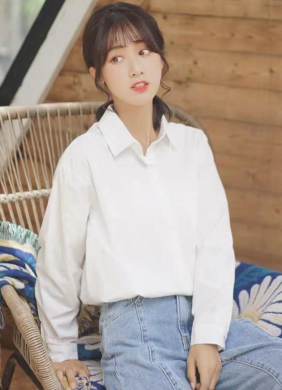 这是一件非常基础的白衬衫,整体没有什么花里胡哨的搭配,非常干净的感觉,女士衬衫搭配图片大全我们在穿这种基础款的衬衣的时候,最简单的方式就是搭配一件款式同样非常基础的牛仔直筒裤,这样搭配会给人一种非常青春,非常有活力的感觉。