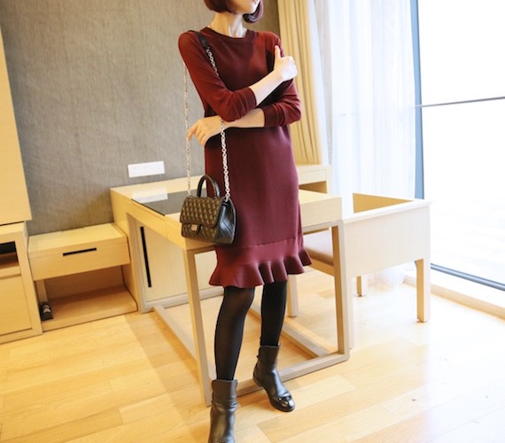 身材不错的妹子,不妨考虑一下这一款稍微有些修身的针织A字裙吧!裙子的肩部位置的看起来有一种皮革的饱满光泽,所以显得裙子不会太过于老气,同时裙子的下摆是双拼接设计,给人一种知性的画风!