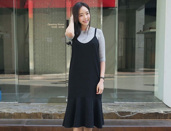 有点小可爱的背带搭配上了有些小性感的包臀裙,瞬间就成了减龄小神器了!裙子是高腰设计的,所以可以在视觉上拉高妹子的身形,不至于出现五五开的尴尬比例;裙摆外翻的小鱼尾无形间将妹子的腿修饰得细长了起来!