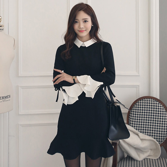 作为一款精致的学院裙,这一款还是非常的不错的!吊带的设计,可以让妹子在里面随意的搭配打底衫或者是毛线衫,一定也不会突兀的感觉;裙摆的拼接的鱼尾设计,十足的女人味,很优雅!