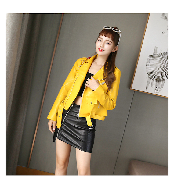 好看到要哭呀,皮质和普通的pu简直不在一个档次上的,皮质超柔软超好穿的呢,小编觉得这同时是一款机车风夹克酷酷的超级有味道,其实还是挺韩版的 , 翻领的设计一眼就休闲的不能在休闲了,袖子卷两圈超级有韩国街头感.