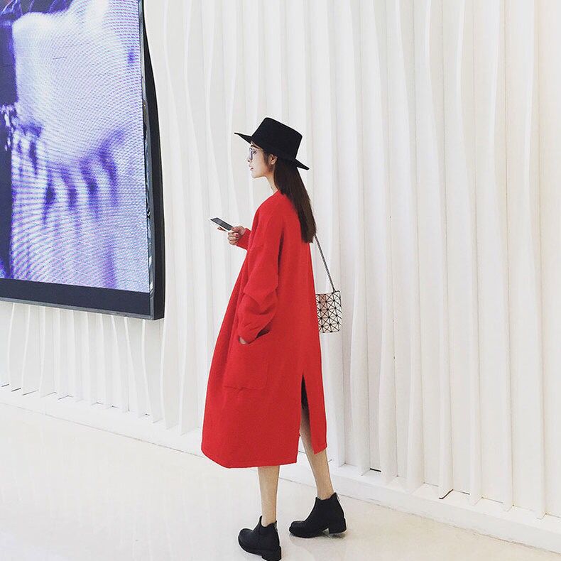 超级宽松的版型任何身材的妹纸都能驾驭,大红的配色更加美艳夺目,穿衣技巧,两侧口袋设计更加实用方便,下摆开叉更加随性慵懒,泡泡袖的设计更加活泼可爱。