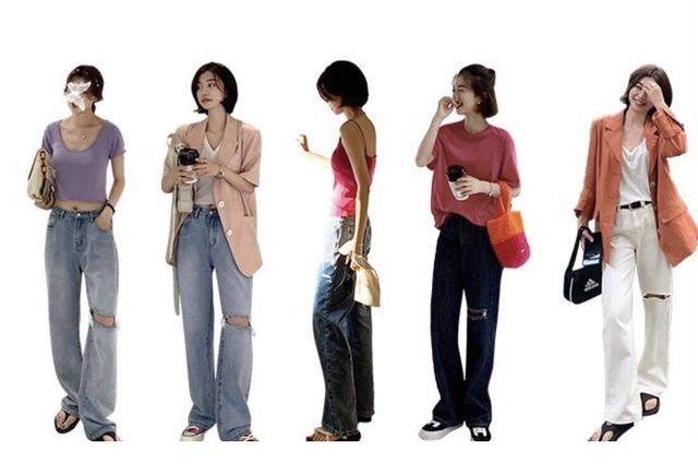 我们搭配一条牛仔阔腿裤,破洞的效果更有个人风格,个人的气质也更加明显。如果走休闲风,适宜搭配一双夏日凉拖鞋,出游则建议搭配小白鞋哦~