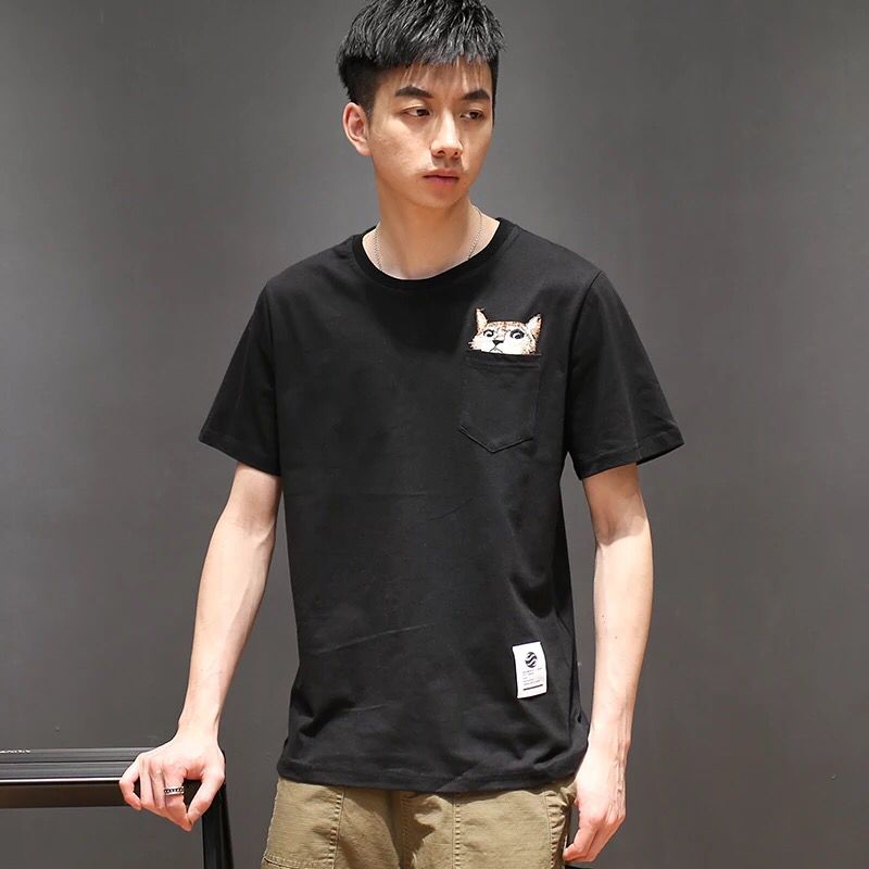 这款简约印花T恤,前面个性又别致的口袋印花元素,整体以黑色为主色调,而且舒适的面料,穿着更加舒适透气,下身可以搭一条休闲裤或者牛仔裤,更帅气哦。