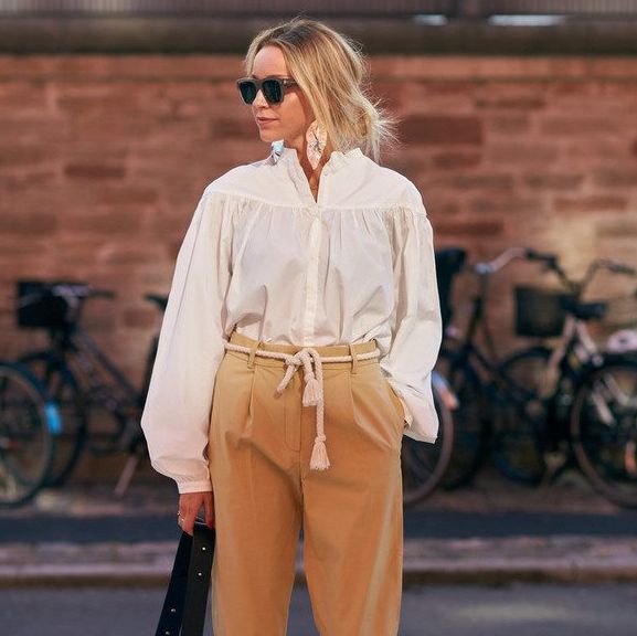 鲜艳的颜色是这次时装周的热门色,像图中的时尚达人穿了一件百褶的荷叶边的衬衣,整体的颜色基调就被定下了,除此之外还有鲜艳的金属色耳环和贝壳项链都很抢眼。