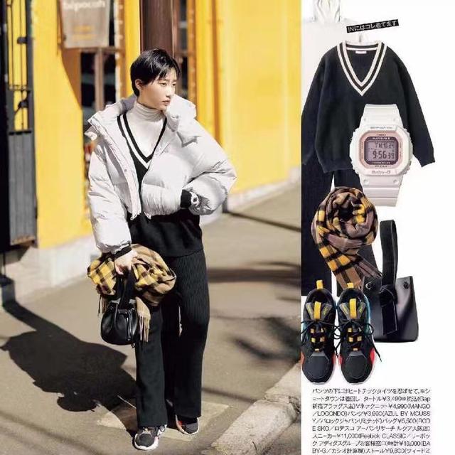 白色高领紧身内搭,搭配黑色大V毛衣,露出小面积的白色内搭,打造出层次感。黑色大V领毛衣,是一种英伦学院风的感觉,又是满满的中性风,十分的时尚洋气,搭配一件黑色的长裤,非常的高级。外穿一件短款灰色高领面包服,纯黑色内搭搭配在一起,小心机的拉高了腰线,显得身材比例十分的完美,就算是宽松的穿搭,也是非常的显高。