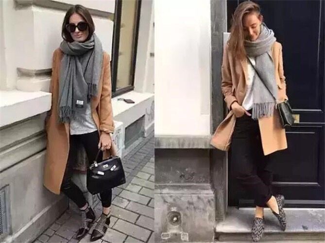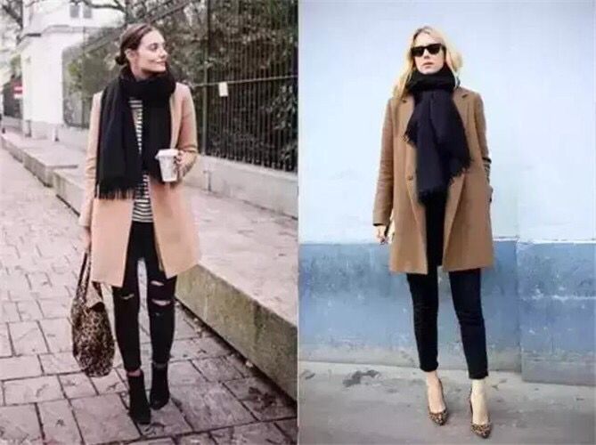 围巾是秋冬凹造型的必备,当保暖的大衣遇上时髦的围巾,怎么穿更好看呢,我来告诉你:根据大衣颜色搭配围巾!驼色外套搭配黑色围巾,时尚满分,搭配黑色紧身裤,美到没朋友!