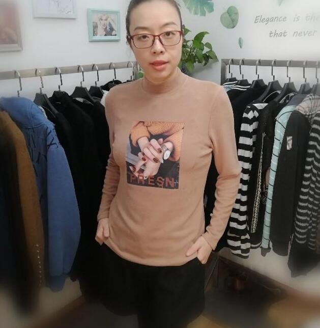 如果当地气温不是很冷,只是早晚有些寒意。那么选择一款加厚高弹棉的T恤就行,可以搭配短款的马甲。保证温度的同时,又不失时尚。这款胸前印花的打底衫,还得比较出彩的。浅驼色的底色,为了不那么单调加入了手部的图案。个性的是在手指甲的位置,用彩色的串珠来妆点。确实是点睛之笔!五个英文字母提升了档次,搭配时同样简单。只是多注意一些跳色,最好外套不要搭同一个色系就好。