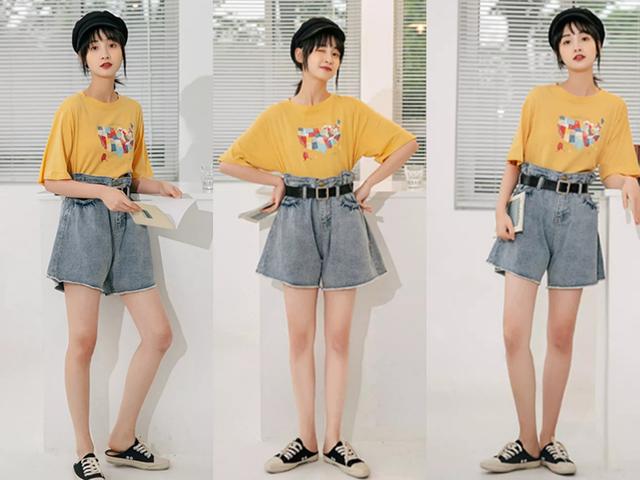 夏天最流行的裤子,你们都穿了吗?这款花苞设计的牛仔短裤,随便穿上身都给人一种显瘦的既视感,花苞的设计,很好地遮掩你腰部多余的肉肉,显瘦效果极佳的,既时尚又很显身材的哦,阔腿的腿型,简直是显瘦藏肉的神器,束腰搭配黄色T恤,满满的青春气息,超显年轻,无论你是18岁还是38岁都适合穿的一款,一点都不挑身材。