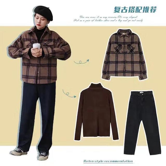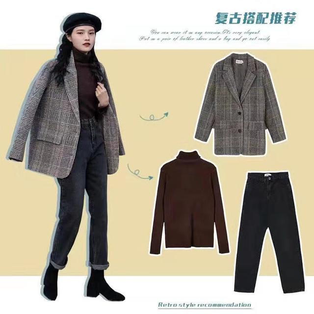 一件棕色的个子外套,配一个色调一致的打底毛衣,看起来十分的协调,在穿搭上一条稍微比较阔腿的黑色阔腿裤,整个人的气质顿时提升了不少,这一身的装扮自然少不了帆布鞋,无论是高帮帆布鞋还是低帮帆布鞋,都不会对这身装扮产生任何的影响,还透过复古风穿搭展现了自己的个性。