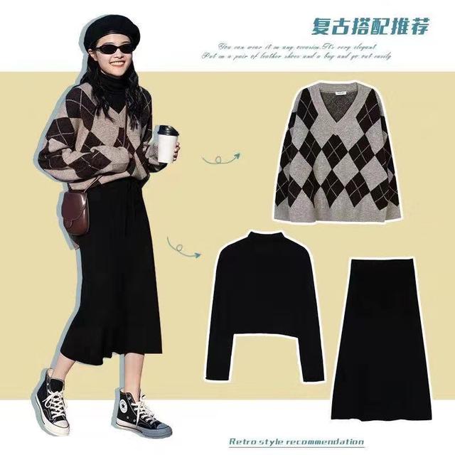 格子类型的衣服是复古风的典型,选一件格子类型的套头毛衣,颈部露出内搭的打底毛衣,拉长颈部比例,营造一种天鹅颈的形象,再搭配一条黑色针织半身裙,将针织毛衣锁紧裙子里面,以拉长腿部和上身的比例,只露出小腿部分,在选择一双帆布鞋,背上一个迷你小包,就是复古风格的真实写照。上一篇:米色衣服怎么搭配好看?下一篇:冬季外套搭配图片女复古衣服女装图片大全