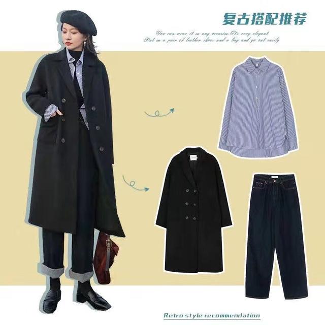 说起复古风穿搭,我想黑色大衣是必不可少的吧,黑色本身就是自古以来就推崇的颜色,它适用于多种场合多种搭配,复古风自然也列在其中,选一件黑色大衣,内搭一件蓝色衬衫,两者的色差形成鲜明的对比,此时在配上一条直筒裤,把自己腿型显露出来,拉长腿部比例,在复古风的基础上,显得高挑了起来。