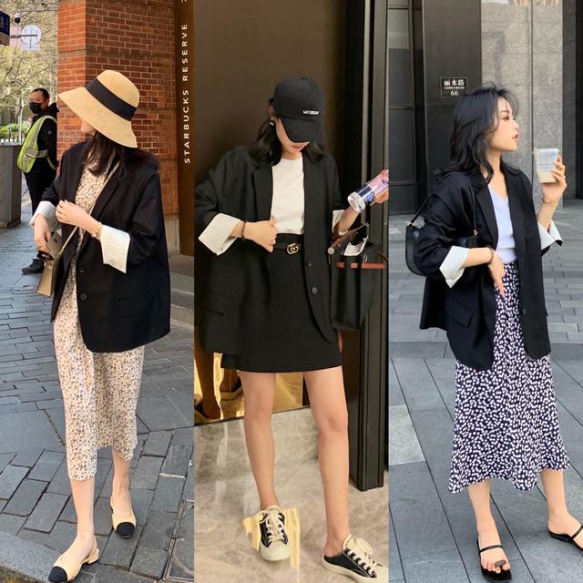 可能小仙女们会认为黑色太过于沉闷厚重了,不太适合春季去选择。但是,黑色西装外套作为经典款式,是每人的衣橱必备款。黑色西装外套想要避免沉闷感,可以搭配一条碎花长裙,就能够很好的减弱黑色带来的沉闷厚重感。黑色西装外套内搭白T,下身搭配黑色短裙也很好看,时尚又帅气。最好一套也太好看了吧,黑色西装外套内搭白T,下身搭配一条碎花长裙,整套搭配显得温柔又气质,又很有成熟女人味,作为通勤装特别合适。上一篇:152小个子女生穿搭图片下一篇:女生粉色上衣搭配什么裤子好看