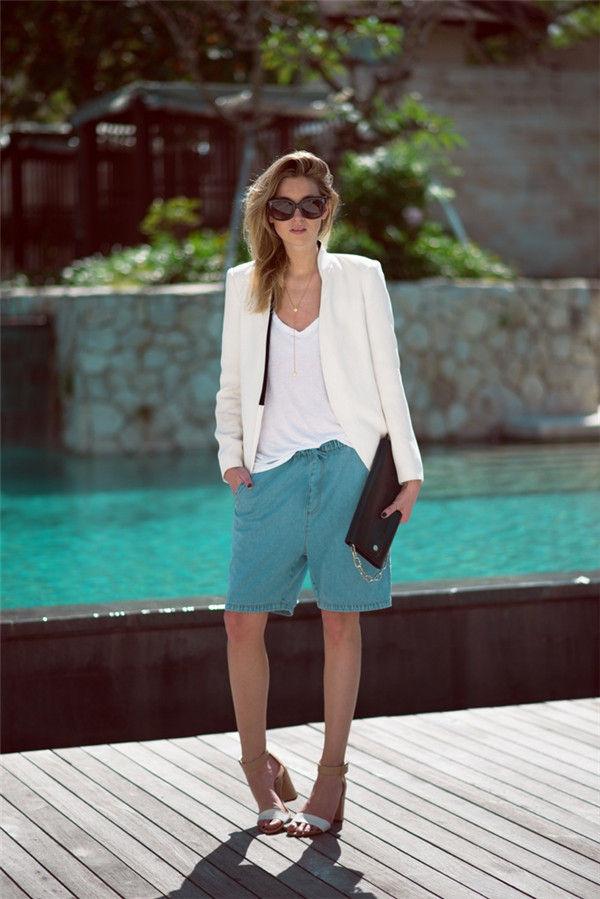 今年最流行的短裤非自行车短裤莫属,欧美博主纷纷为它站台,不少喜欢中性风格小仙女们为追赶潮流盲目的将自认为更加时尚的五分牛仔短裤穿上身,但是,没有名模同款大长腿的人还是不要轻易尝试啦,尴尬的长度加松垮的材质只能将你的腿显得更短,像极了偷穿了爸爸的睡裤。