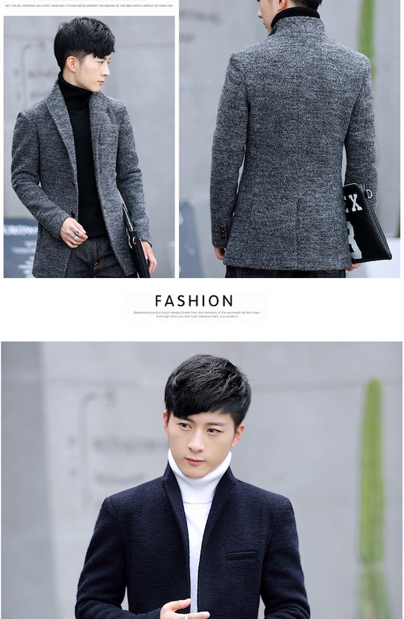 1.这款纯色款毛呢大衣非常适合商务型人士,既有霸道总裁的即视感,排扣设计非常修身显高,搭配上纯色衬衫、纯色领带,很有商务的气息。不管是休闲还是商业活动都非常适合。