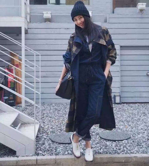 女神圆圆穿格纹大衣+牛津平底鞋,带顶毛线帽,轻松有范儿。这么搭配是不是也很好看呢?嘿嘿,好看的还在下面。