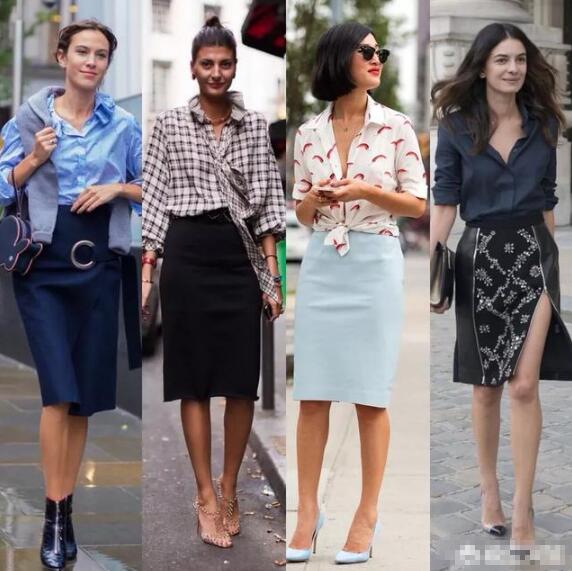 衬衫搭配一步裙,是最基础的简约装扮。基本款的一步裙多是黑色款,而现在的一步裙在保存原有的版型外,还多了些印花开叉的设计,时髦度剧增。经典白衬衫搭配金色一步裙,鞋子选择黑色高跟凉鞋,再搭配一款精致的手袋,既有OL风的简洁干练,也有成熟女性的知性优雅。除了基础色的搭配,选择红色丝质衬衫搭配黑色皮质一步裙,有些小性感的味道。