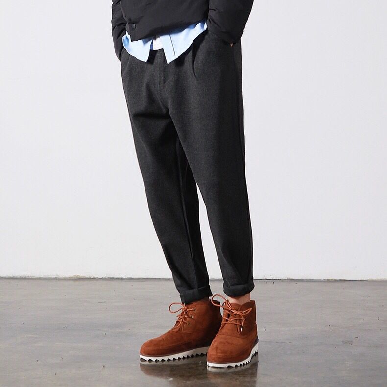 窄脚裤要求高,在入手之前你还是要对自己的身形有一定的评估。如果你的腿不胖不直,而且小腿肌肉不过于强壮的话,那么你可以放心大胆地去尝试,反之也就别浪费钱了。