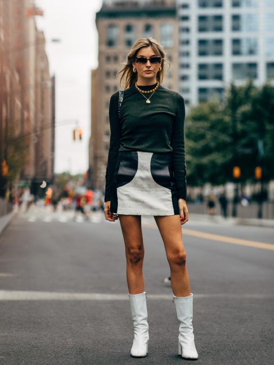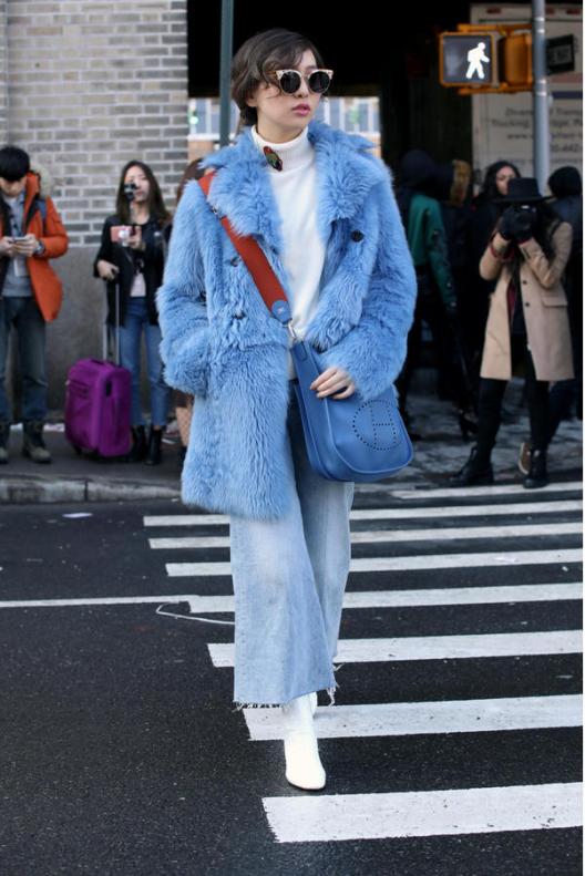在这个时尚信息大爆炸的年代,流行单品更新速度太快了,难道把所有时髦元素堆在一起就是时尚达人了吗?答案当然是否定的,在衣服搭配时,一定要懂得抓住单品之间的相互呼应的特点,蓝色外套和白色打底衫搭配水洗牛仔裤,脚踩白色漆皮靴,全身以经典的蓝白色为主,色调一致,层次分明同是又和谐统一,材质上的蓬松与贴身相结合,也体现出了超高的穿搭功力,与众不同超凡脱俗!