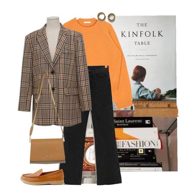走在时尚的最前端,做最顶尖的时尚达人,不妨试试这样穿。西装外套的款式非常的有气质,不同于以往的风格,多条纹的线条和颜色拼接更突出了这款外套的与众不同,上衣选择一款橘色的毛衣,下身可以穿搭一条黑色直筒裤,很好修饰腿型,洋气和凸显女人气质。