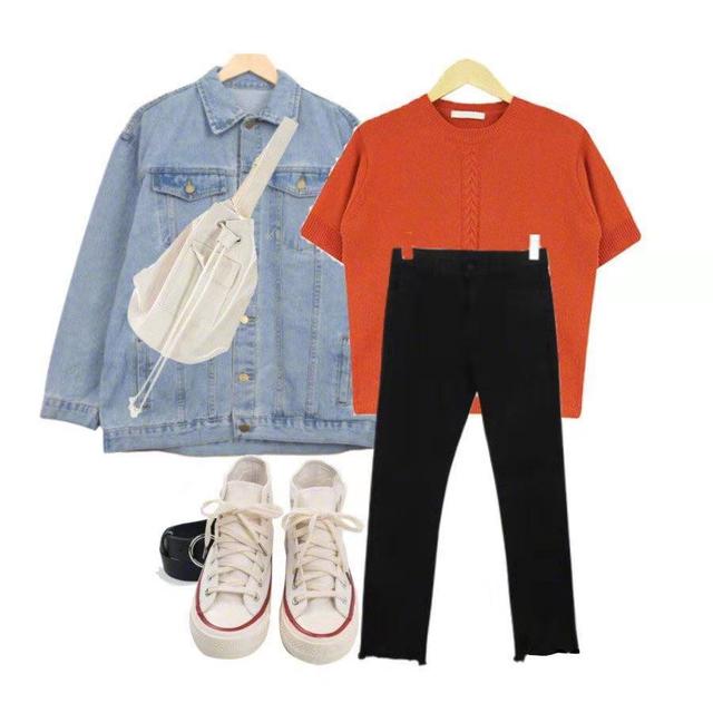 在初春,一身阳光活力的气息范是哪个女人所不追求的呢?橘色的T恤毛衣非常有格调,既能抵挡住初春的寒意,又能体验到春天的暖意。橘色和黑色的九分裤相搭,在颜色上非常的合适,橘色和黑色色差非常明显,走在大街上这身穿搭也是非常夺目的,最主要的就是有牛仔外套的搭配了,不仅活力四射,穿上这一身,更是一副典型的阳光女人模样。