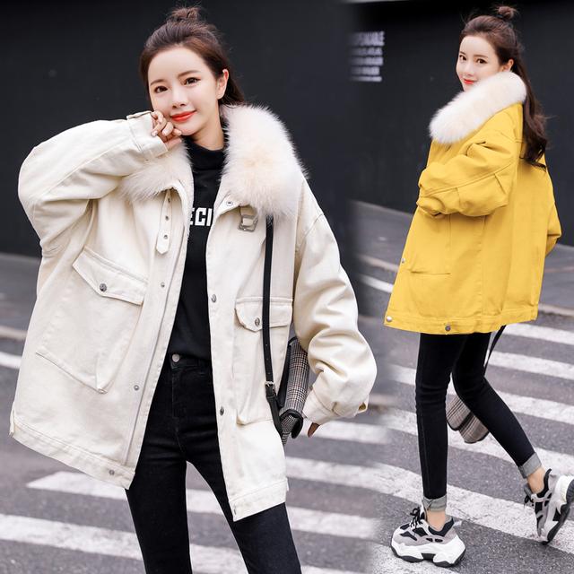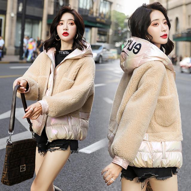 2019流行的面包羽绒服款式2019年ins超火的羊羔毛拼接式棉服外套,连帽的领型设计,穿起来时髦帅气又具有青春活力feel,宽松显瘦的面包服样式设计,拉链门襟,造型时尚,衬托女性柔美气质,短款的设计,能提升腰部线条,塑造高挑的视觉美感。如此,温度与颜值并存的衣衣,还不快快穿起来美一把 。