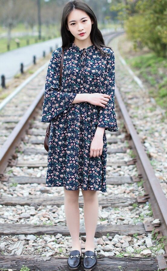 带着小巧碎花的连衣裙,裙身较为宽松,对于身材的包容性较强。而裙子的袖口设计为喇叭袖,让裙子显得更加有灵气。最后再配上一双小皮鞋就很完美了哦~转眼就入秋啦,秋季服装换起来!
