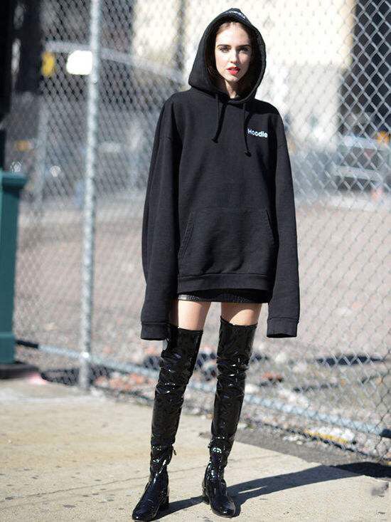 卫衣本身就是休闲的风格,再加上宽大的版型,打造慵懒是轻而易举的事情,其中还有青春俏皮感,随意搭配就很有逼格,而且你还能打造出“下半身失踪”的显高时髦造型。