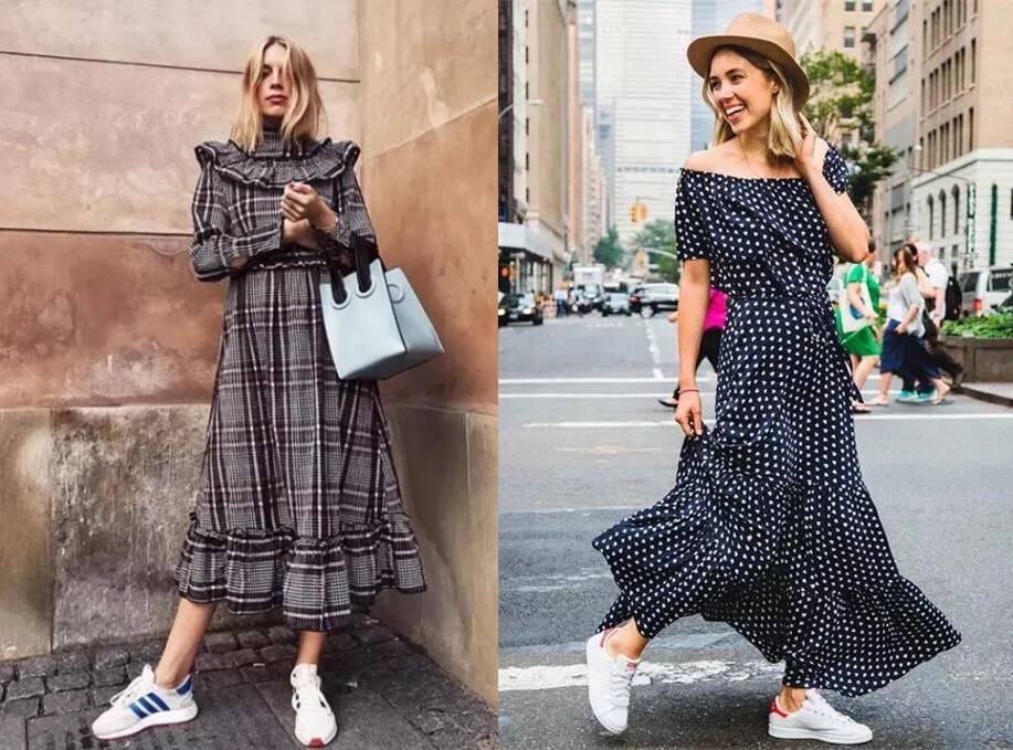 如果你有一件连衣裙,那么绝对是印花的,对于很多仙女来说,没有一件印花的连衣裙那是不完整的,运动鞋的混搭极大的中和印花元素中的甜腻,让你整体look更加的有质感。