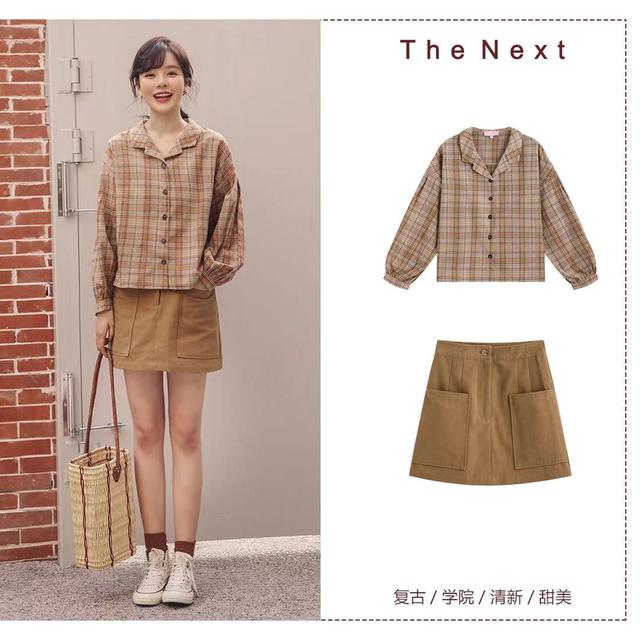 裙子简洁却不简单,A字版型是十分显瘦的,同时身前两个大口袋的设计,也让这款裙子更有对称的美感。裙子的前部被线条分割成了几个部分,从视觉上来看裙装更有层次感。而这样心机的单品,最好也搭配一款相对时尚而稳重的款式,衬衫就是不错的选择。同样的色彩搭配,看上去复古又清新。