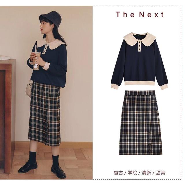 格纹元素经久不衰,在不同年龄女性的服装中都是很流行的元素。格子款式的半身裙看起来低调而有时尚感,直筒版型设计看起来修饰身材也很年轻。这种校园风十足的款式,自然也要搭配比较有校园青春风的娃娃领毛衣了。休闲而充满年轻气质的穿着,搭配一款小皮鞋更有英伦范。如果你想让自己看起来更时尚、或是可爱,可以选择一款渔夫帽。