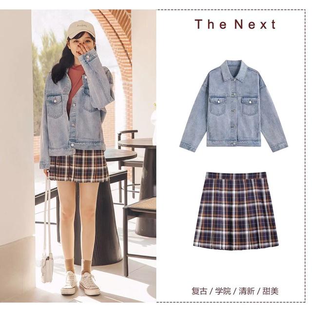 如果说长裙代表的是优雅,那么短裙一定就是活泼、可爱等比较外向的相关气质了,同时也相对比长裙更加性感。格子褶皱短裙,非常有青春气息,同时英伦风满满。而在搭配的时候选择同样气质清新随和的款式,一定不会出错。浅色牛仔外套是不是给你一种亲和力满满,又十分年轻的感觉。
