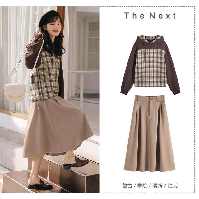 卫衣搭配半身裙更适合文艺、轻熟气质的女人穿着。格纹和纯色拼色的上衣,偏向学院风和复古感的款式。因此在搭配的时候可以选择颜色不那么明亮的色彩,同时饰品的选择也很重要,一款可爱的贝雷帽瞬间让你文艺风又可爱。