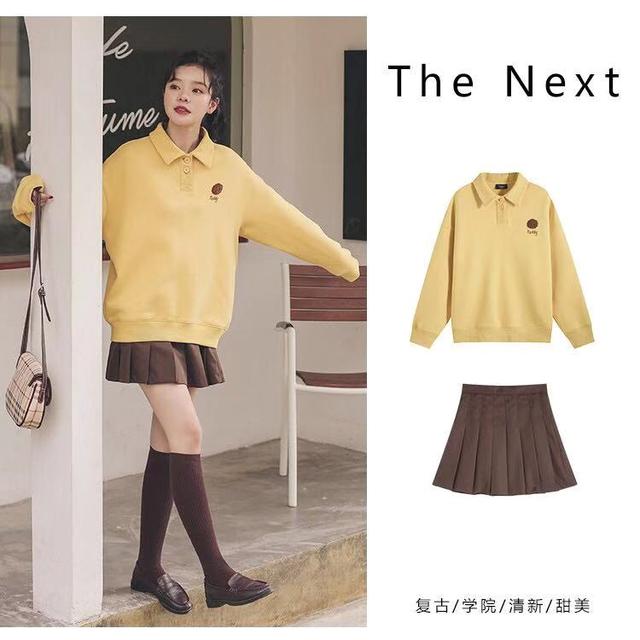 深色的百褶裙,纯色的设计在搭配的时候,如果想要让自己脱颖而出,就要靠其他单品了。裙子怎么搭上衣图片?百褶裙其实是十分有青春气息的款式,理应活泼的款式却用了素净的深色,那么上衣就要展现你的甜美气质了。明亮的黄色上衣,活泼甜美的气质让人一眼记住你,减龄又时尚。